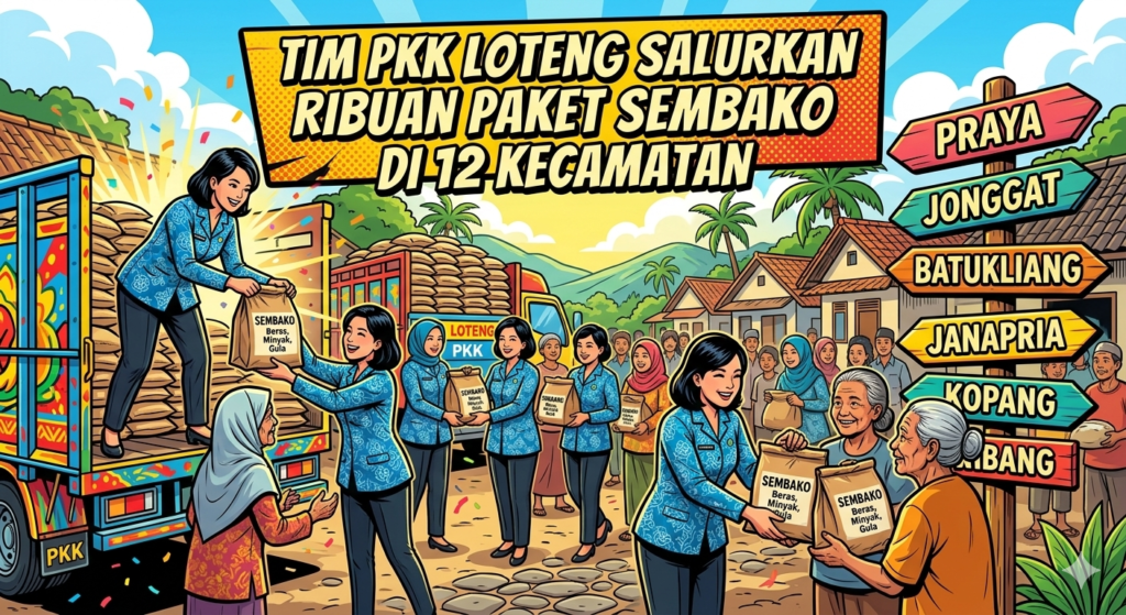 Lombok Tengah, NTB – Tim Penggerak PKK Kabupaten Lombok Tengah menyalurkan ribuan paket sembako kepada para lansia dan masyarakat kurang mampu di 12 kecamatan selama bulan suci Ramadan. Kegiatan sosial ini dilakukan sebagai bentuk kepedulian sekaligus memperkuat solidaritas masyarakat menjelang Hari Raya Idulfitri.